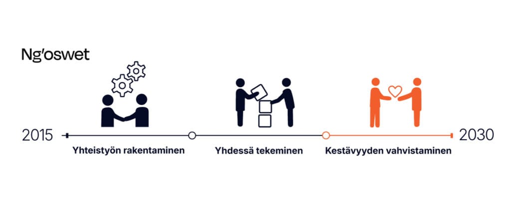 Ngoswetin aluekehitysohjelma sijaitsee Länsi-Keniassa 400 kilometrin päässä Nairobista. Seutu kärsii ajoittain kuivuudesta ja liikkuminen on haastavaa, sillä alueen läpi kulkee vain yksi kulkukelpoinen tie.